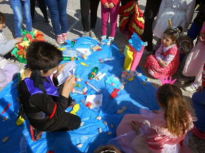 5- Езерцето потоа повторно го поставуваме на соодветно место во некој слободен агол за да може таму да остане како едукативна поставка а децата долго време да имаат пристап до материјалите..