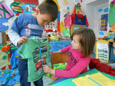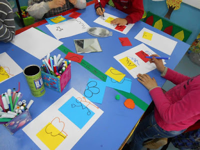 Активноста може да се прошири со тоа што децата сами би изработувале половини и освен предмети би цртале половини од големи печатни букви а потоа би ги правеле цели со доближување до огледало. Во нашиот случај ние денес продолживме со доцртување на сликите.